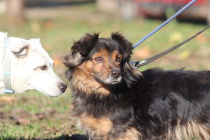 Nagylétszámú menhelyről érkezett. Bizalmatlan, nehezen barátkozó, valódi csau.